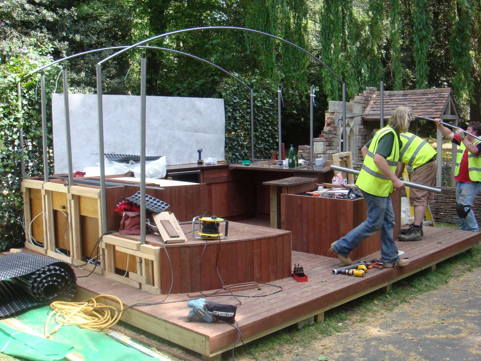 Stu (of Terra Firma our landscape contractors) was up at the warehouse working late to push the garden a bit further on. He’s still working on cladding the units, but he managed to send me a photo late last night of the pergola erected, finally in place! It looks impressive! We will need to cut it down a bit, currently too high, but easier to cut metal off than add it on…………..apparently we will also need to trim a little of the length off our 1.8m chopping board, but want to check this out before doing the deed.
