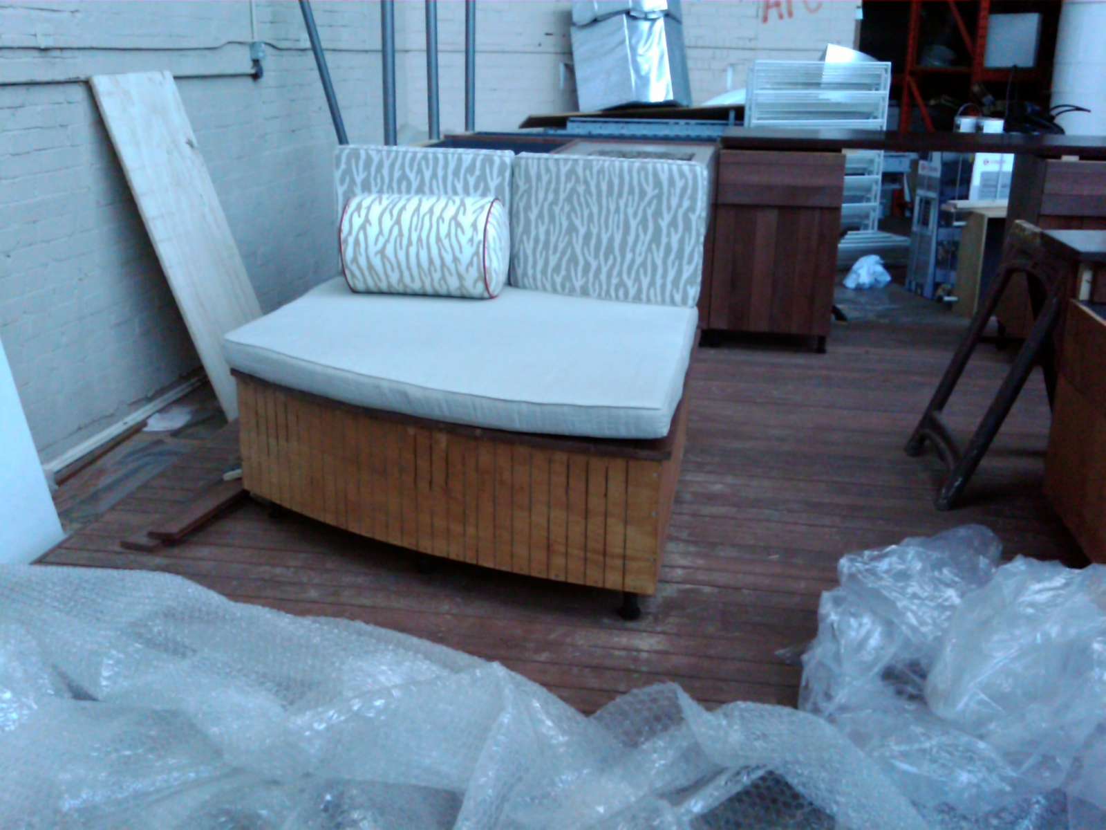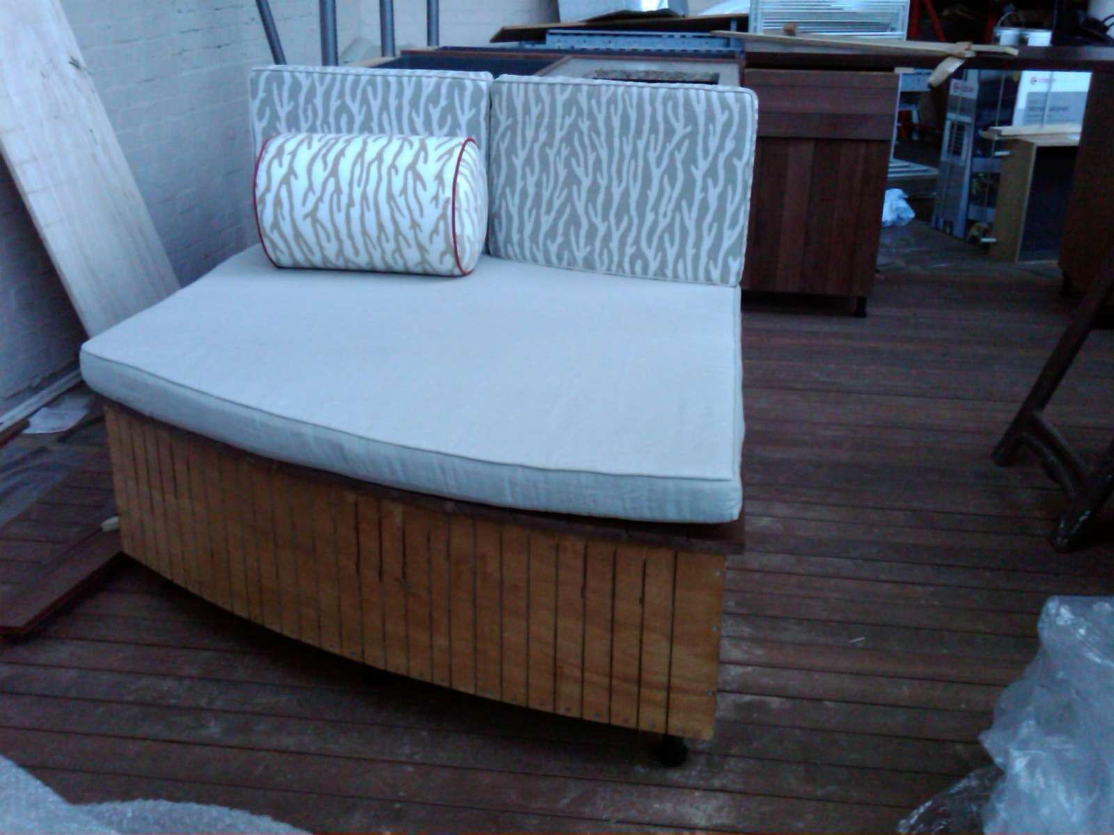 Great news cusions arrived and took them up to the Proportion Warehouse to make sure they fitted …………..Bad news the back cushions didn’t fit – they were too tall! Oh well they looked great and we do have time to amend them, so Chloe from HGDB (Harrow Green Design & Build) has taken them away again to be sorted…….thanks Chloe. Next time they will be perfect!