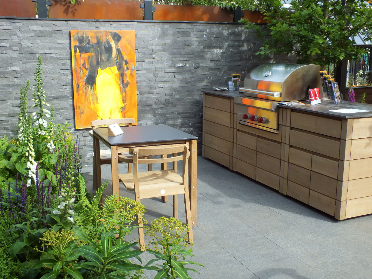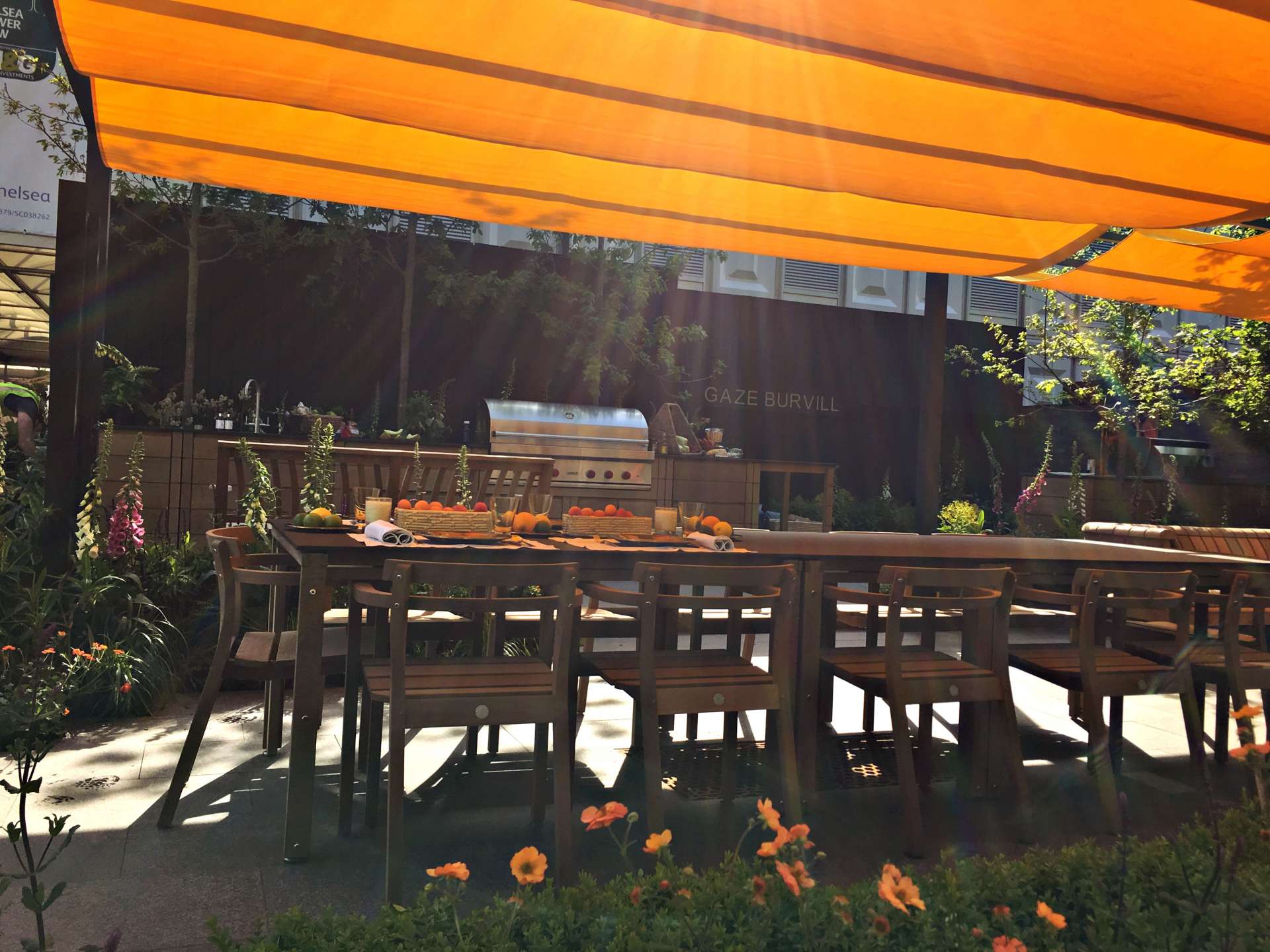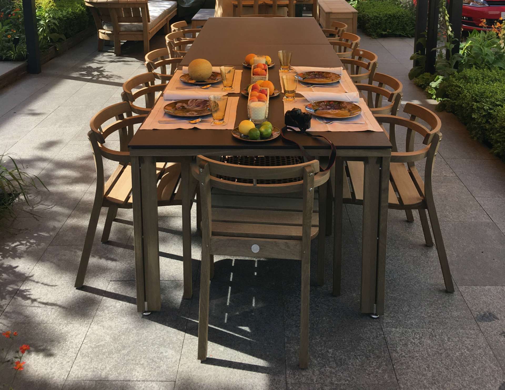 One of the most functional features of this show garden is the Levity Dining Table. The large and luxurious oak table accommodated 10 seats at our Chelsea garden, but 2 more chairs could easily have been added. A massive table like this is perfect for dinner parties, or family get togethers, with the table top to host a massive BBQ buffet. ???? ???? What better way to make everyone happy at family gatherings than to serve a selection of yummy food on the table, allowing people to help themselves and make use of the seating around the table or in any of the other seating areas around the garden. If you want something smaller for more intimate dining occasions, the table used in this garden can also be split up into 3 smaller tables. Getting a diverse dining set like this means you can mix it up with a smaller dining table, or make use of the whole table by spreading out plates of tapas and some lovely bottles of red wine! ????????????