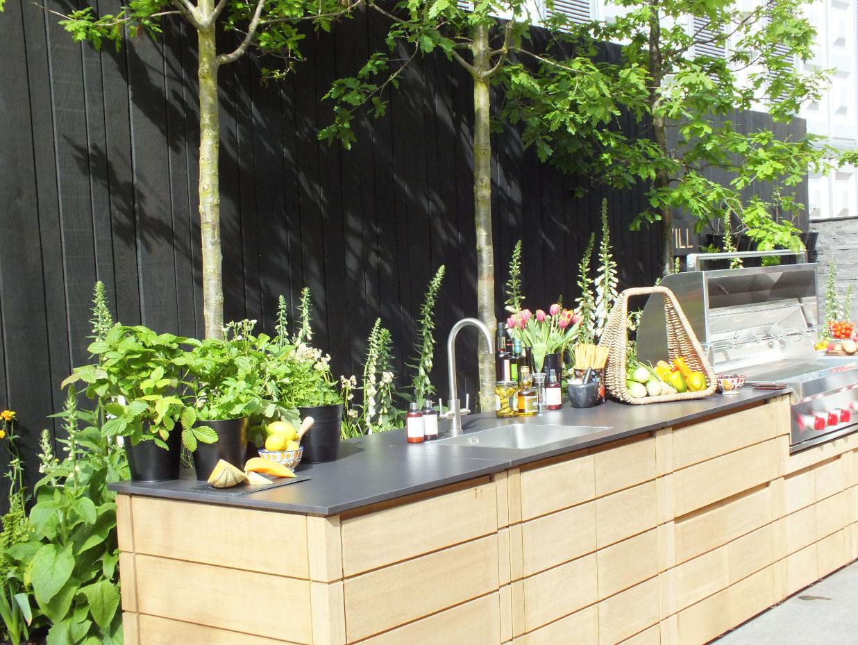 Just to make your life, and your meals, even easier, the kitchens spacious counter bar top is a massive 5 and a half meters long. This area is perfect for cooking for big groups, with its countersunk BBQ and under counter storage, it allows you to keep everything you need within reaching distance. The top also features a large space for prepping, conveniently placed next to a luxurious stainless-steel metal sink. Adding to the ease of the outdoor kitchen, potted herbs are scattered close by,???? ???? ???? making them at hand for you to add into drinks or meals.???? ???? If you wanted to take this one step further, you could add a green herb wall or living wall. This could provide a beautiful splash of colour and will also keep the children entertained picking the herbs for dinner! Real foodies could even add a pizza oven or tandoor oven into this outdoor kitchen to take their food game to a whole new level.