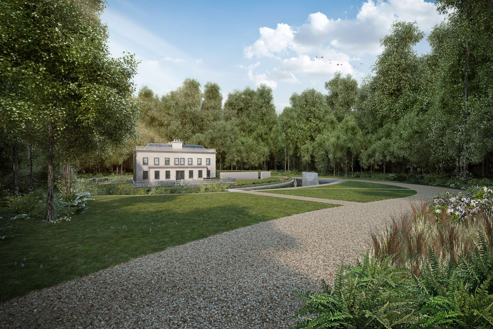 The original Debden Hall was designed by the infamous architect Henry Holland, a prominent figure whose clients consisted of the very highest English nobility. The newly proposed Debden Hall uses this historic figure to create a new layer of history, with subtle hints to what was by restoring the country estate’s lost features.  Whilst the designs of previous Landscape Architect, believed to have been Capability Brown, embodied natural simplicity in comfort and elegance, he strived to blur the boundaries between country estates and the wider landscape, Aralia Landscape Architects have sought to design these with a contemporary twist.   Characteristics of his landscapes included bridges, cascades and meadows, as well as lakes and driveways, which were iconic elements of a Capability Brown landscape. Aralia have carried these principles through into this new contemporary landscape design for Debden Hall.  The project will be take place over the next few years.