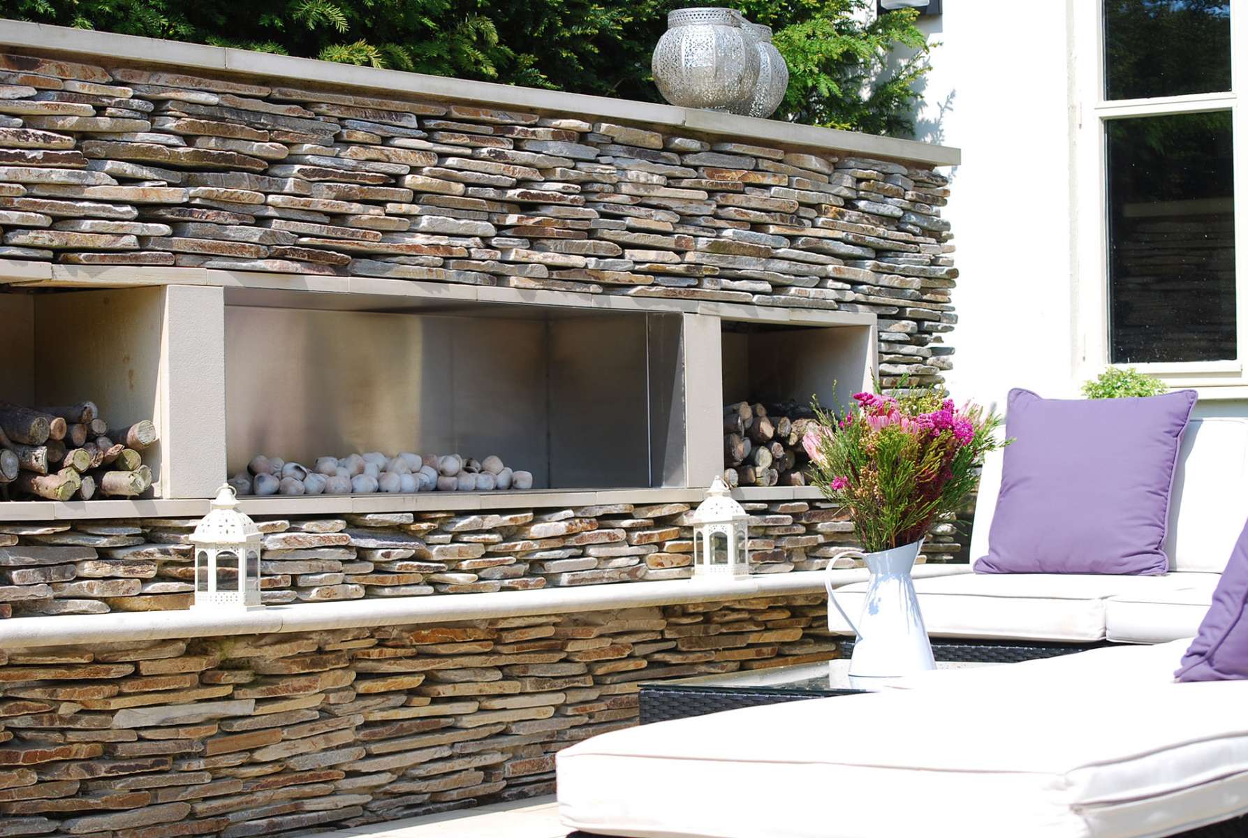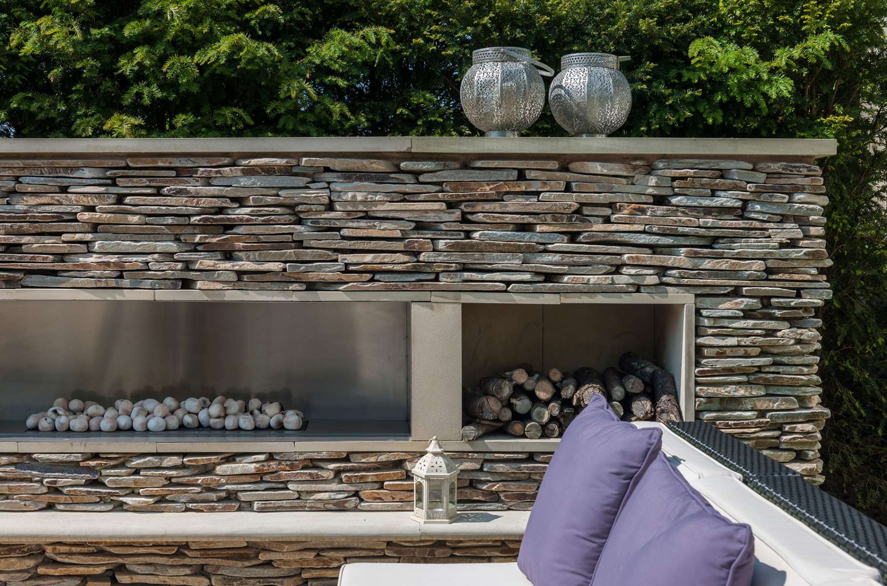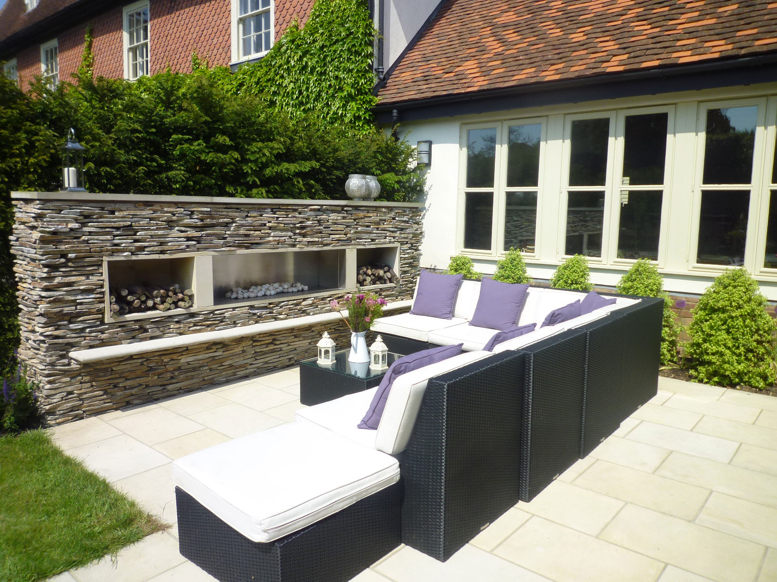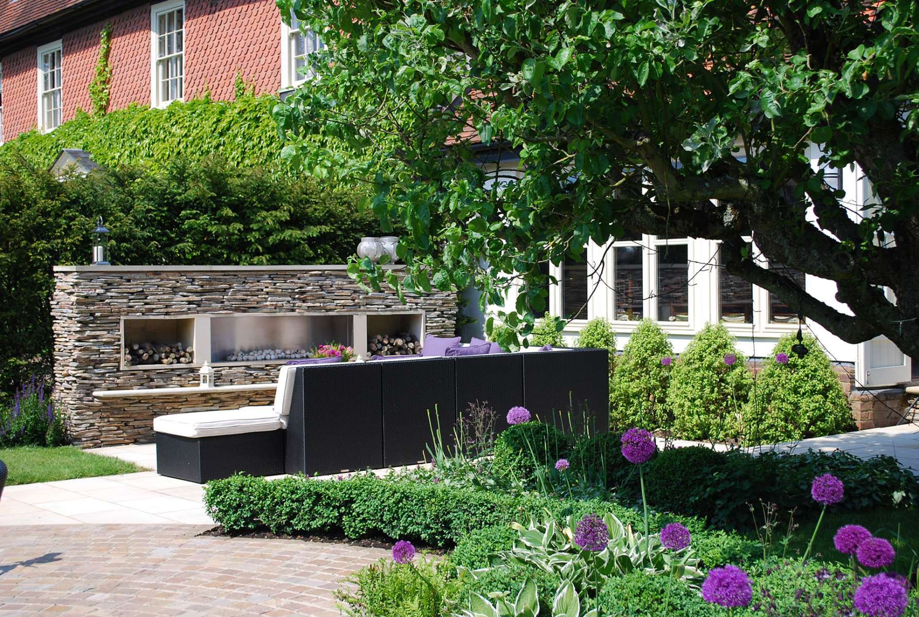 Bespoke Wooden Gates, Entrance Driveway, Natural Stone Terraces for Entertaining with BBQ area, Bespoke Outdoor Fireplace, Zen Garden with Sculpture, Vegetable Garden, new Woodland garden area and Formal Rose Garden.  Additional services included Garden Lighting, Garden Irrigation, Garden Furniture sourcing and Garden Maintenance.