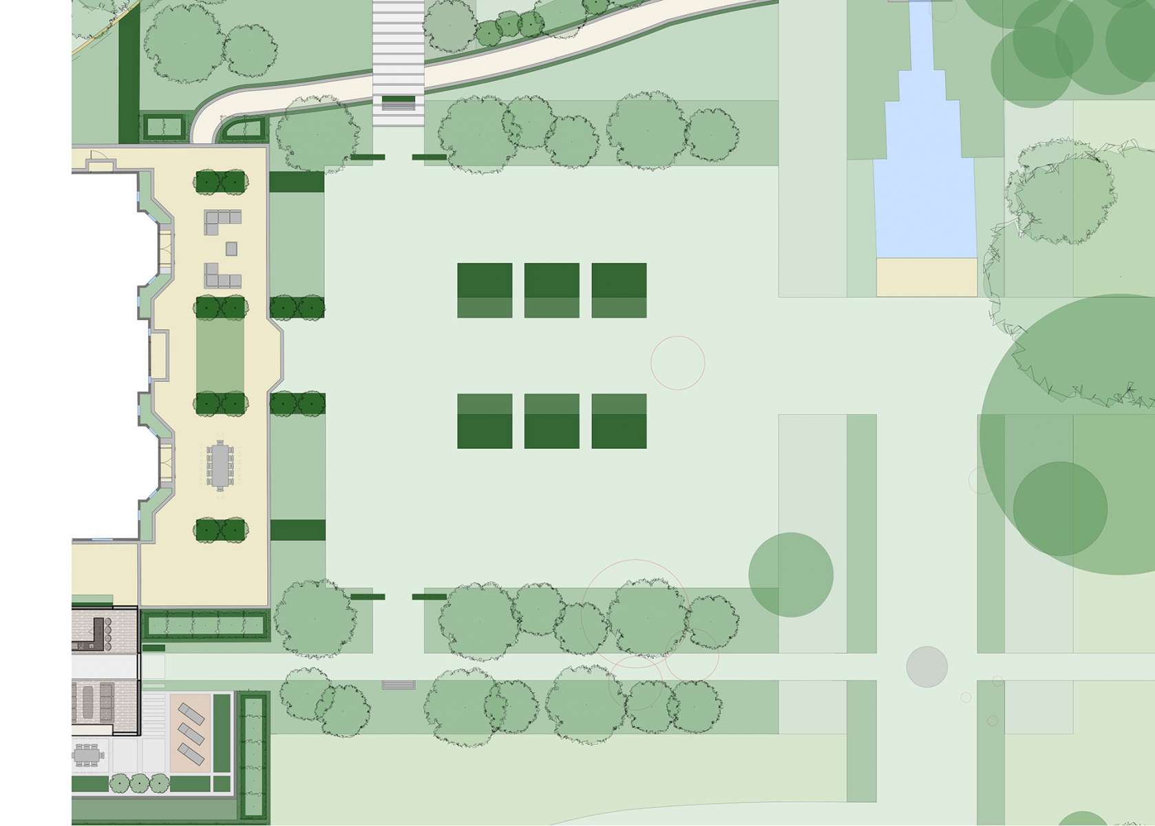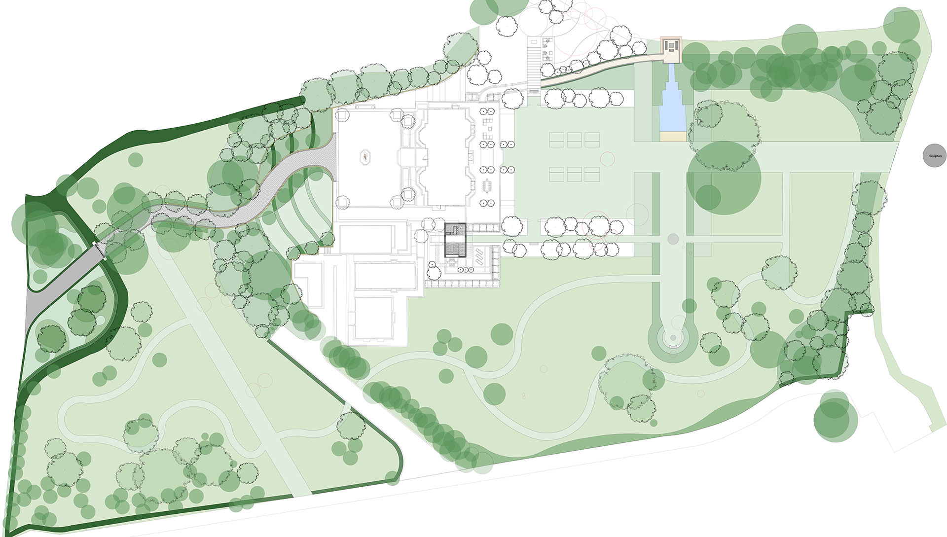 Islandbridge Developers approached Aralia Landscape Architects with a view to providing an enhanced landscape scheme, for a new build mansion that they had built a few years prior.  The country estate extends to numerous acres and Aralia put together an overall master plan for the whole site, that would be installed with a phased approach as and when.  Phase 1 was then detailed up but due to a change in company strategy the property has subsequently been put up for sale.